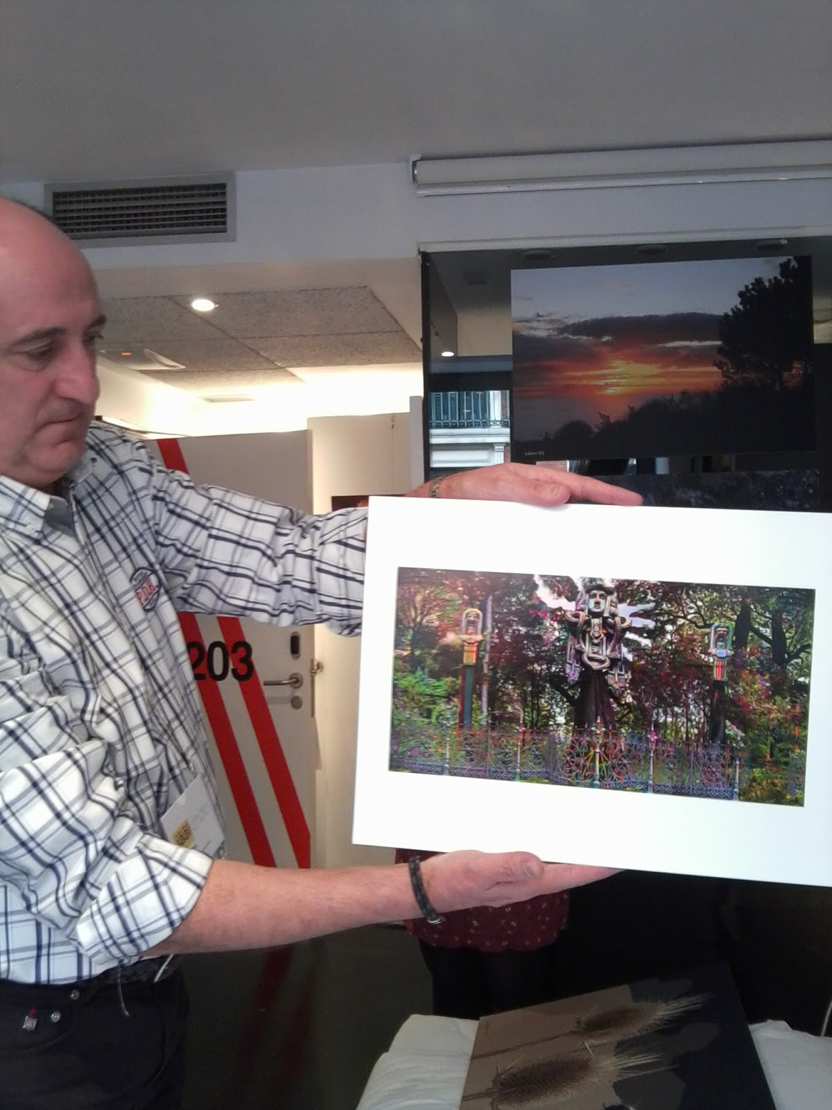 Obras del prometedor Artista de tan sólo 28 años : Joseph Klibansky Acordaros de este nombre... Esculturas de resina (también en bronce pulido) y "pinturas digitales" que pueden llevar unas 600 fotografías como ocurre en esta obra. El resultado es luego enriquecido con pintura acrílica sobre papel de algodón cubierto con una resina líquida. |